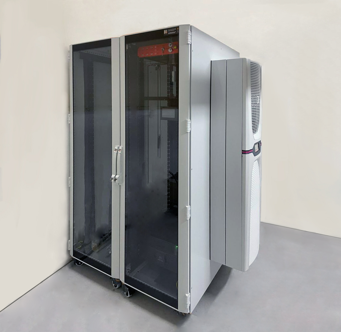 - Lockable IP55‑rated rack with UPS, monitoring, fire‑suppression & side‑mounted cooling – Dust‑/water‑proof; complies with physical‑security standards.